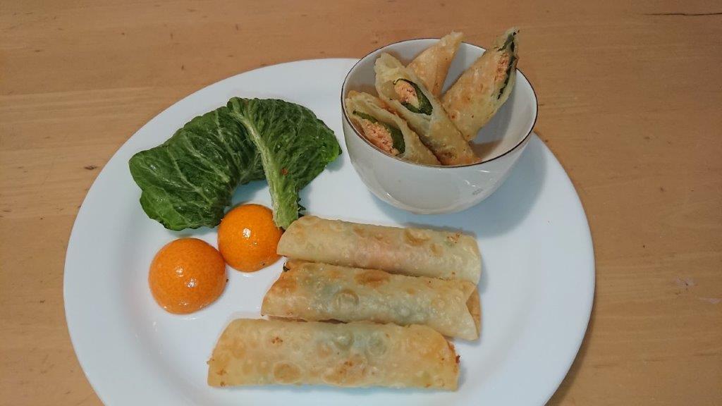 ②ホウレン草はラップに包みレンジ(500w)で20秒チンして3cmに切る